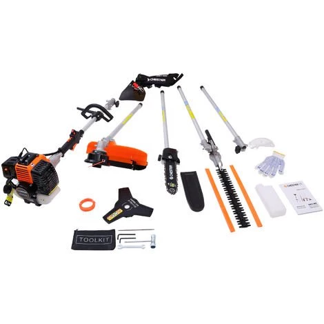 L’outil multifonctions thermique 4 en 1 de CHESTER est l’outil indispensable pour entretenir vos espaces verts! Equipé de quatre outils qui se changent très facilement : un taille-haie sur perche, une tronçonneuse-élagueuse sur perche, une débroussailleuse à fil et une débroussailleuse à lame. Une perche d’extension est également fournie pour atteindre les espace les plus hauts. Ce kit contient une paire de gants et une paire de lunettes pour un travail en toute sécurité.
